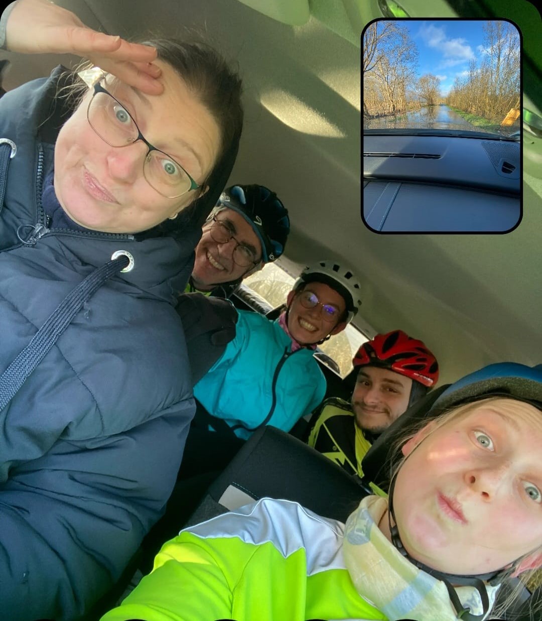 Merci à Valérie 😉 et sa voiture-balai, pour avoir fait passer les passages inondés à nos 4 valeureux patineurs.