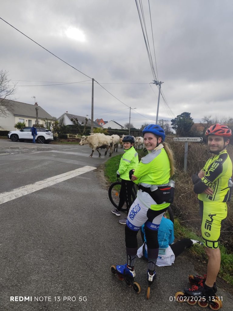 Samedi 1er février, 4 valeureux patineurs (Loélia, Gaëlle, Alexandre et Stéphane C), accompagnés de Guénaël en vélo, ont fait une belle sortie roller.